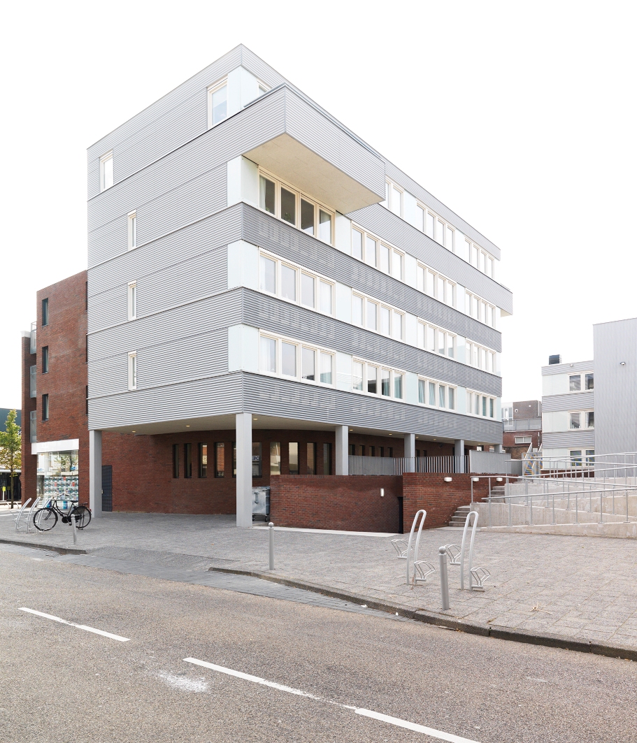 Beverwijk – In dit gebouw bevinden zich parkeerkelder, drie winkels op de begane grond. Op de eerste, tweede en derde verdiepingen zijn elf zorgappartementen en drie zorgappartementen gebouwd. In deze zorgappartementen worden verstandelijk gehandicapten gehuisvest.